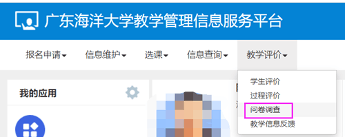 二、调查方式:登录英国365集团教学管理信息服务平台,教学评价-问卷调查: