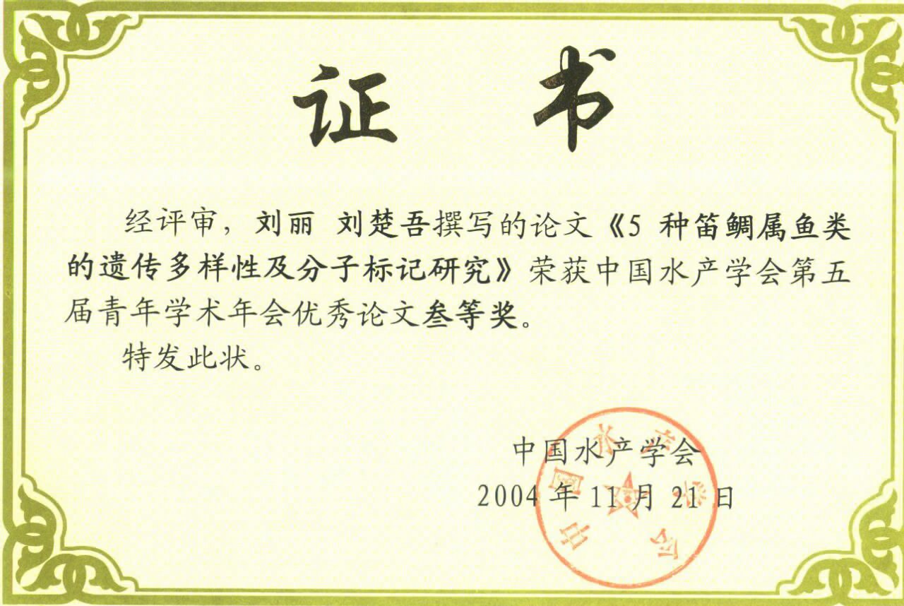 6、刘楚吾中国水产学会学术会议论文三等奖2004年.jpg
