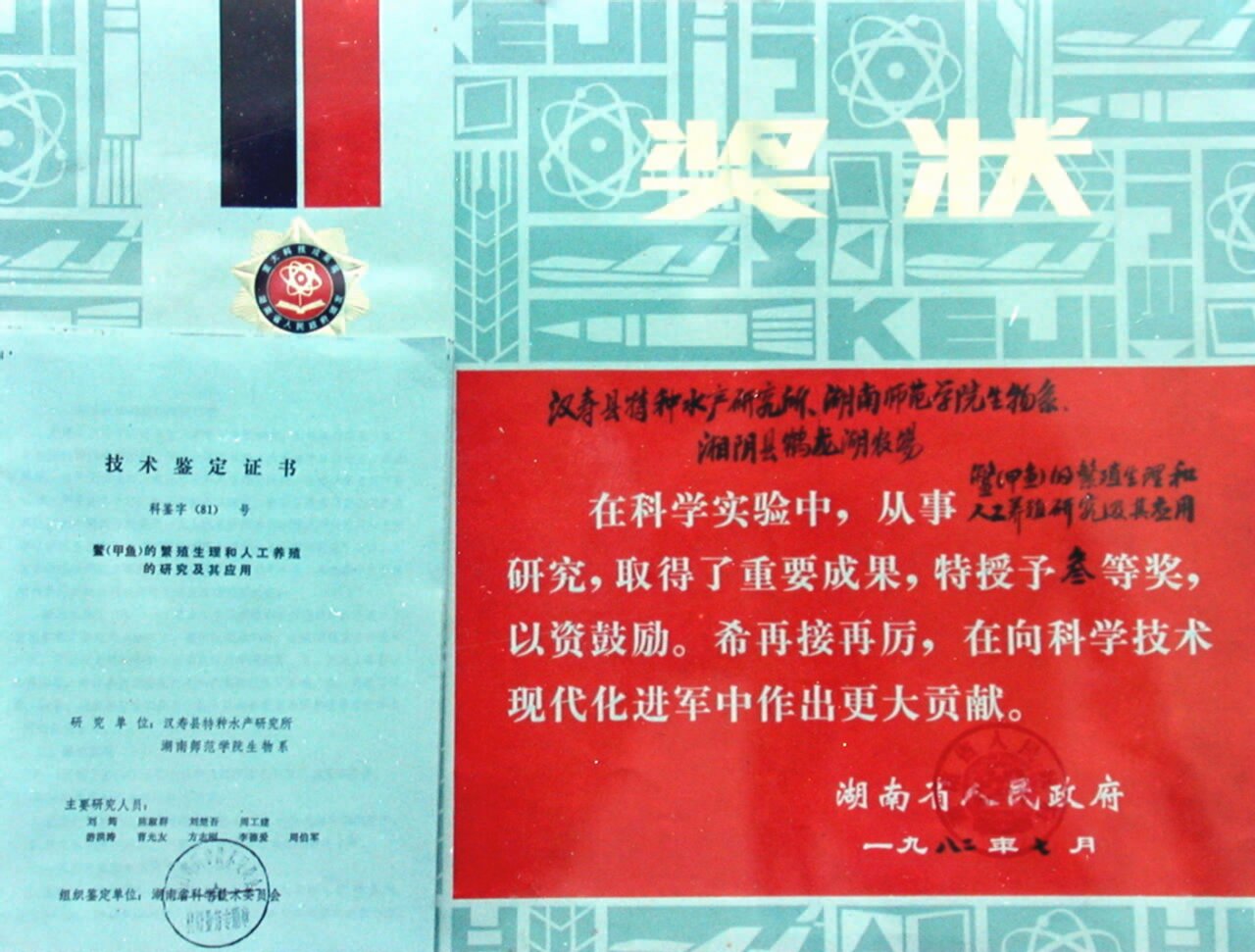 17、刘楚吾湖南省水产学会优秀论文《鳖性腺发育的研究》一等奖1985年.jpg