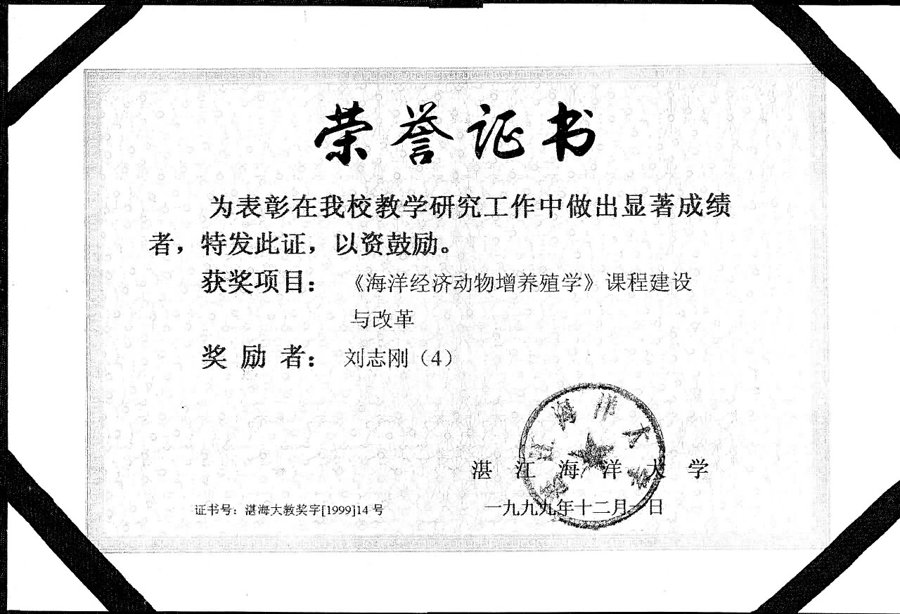 3、刘志刚广东省教学成果奖二等(海产经济动物增养殖学课程建设与改革)1997年.jpg