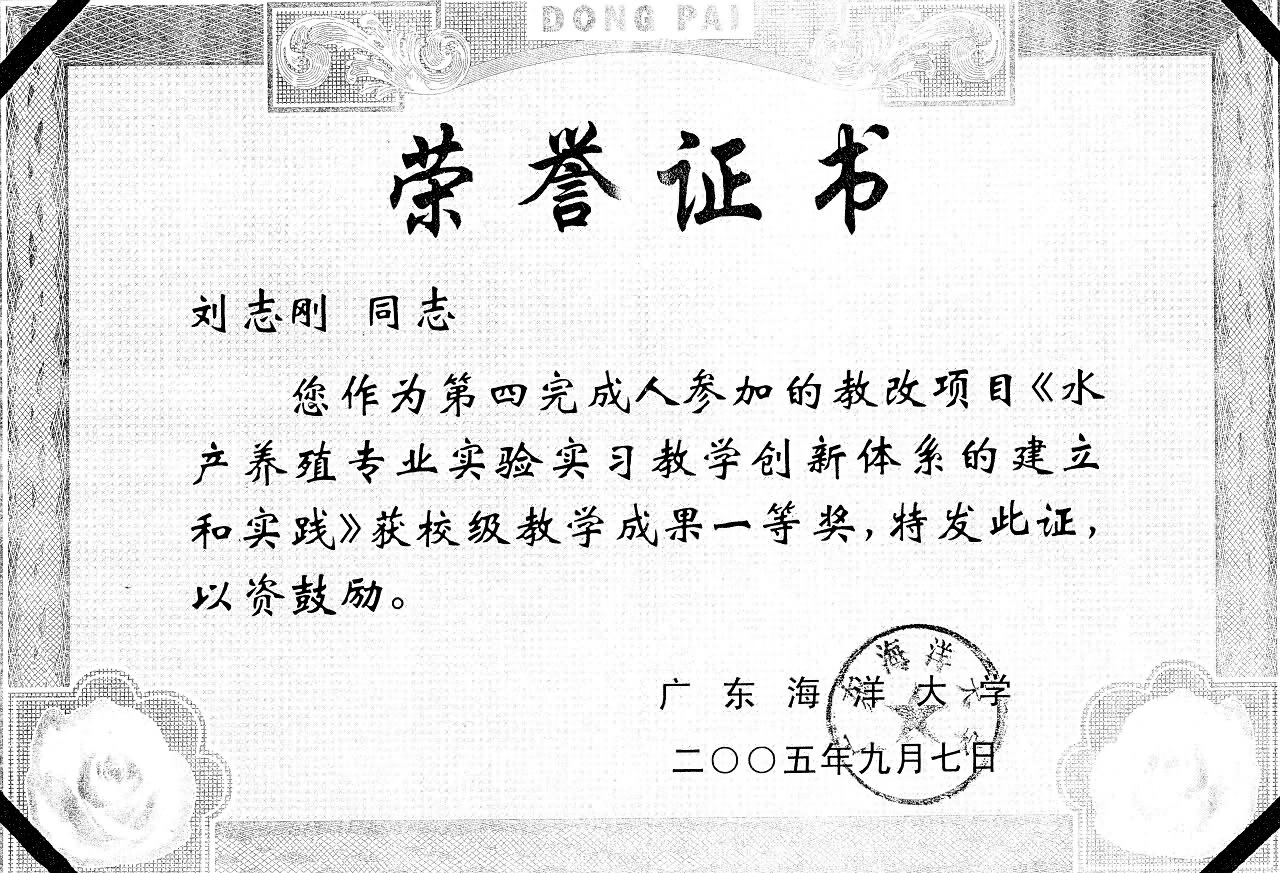 1、刘志刚第五届广东省教学成果二等奖(水产养殖专业实验实习教学创新体系的建立与实践)2005年.jpg