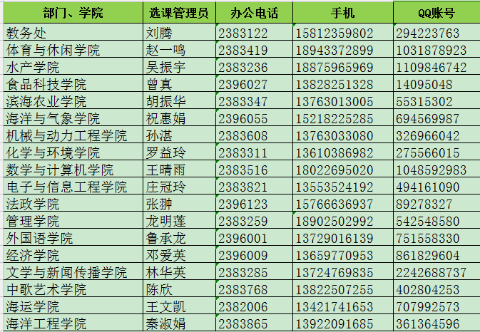 选课过程中如有问题请在8:00-12:00,14:30-17:00打电话或QQ咨询。选课咨询方式如下: