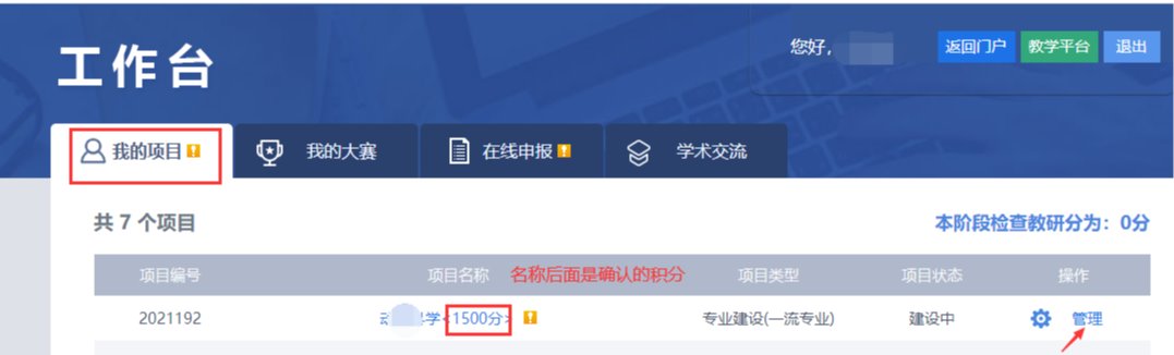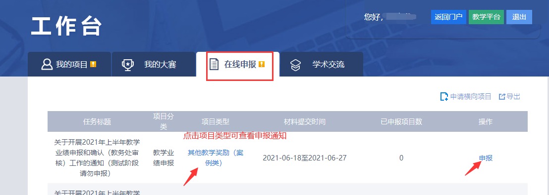 (二) 请在“我在项目”查看本人所有的教学业绩,切勿重复申报以免造成数据错乱。