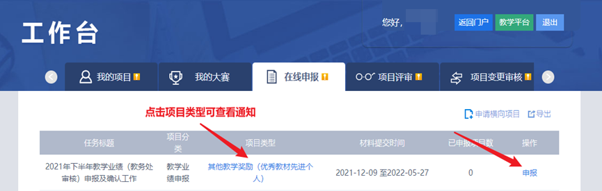 1、2022年6月9-20日完成系统申报以及纸质材料的报送。如在此时间范围之后发生的教学业绩,系统将在6月25日开放一天,过期不再延长。请各申报人务必在此期间及时查看项目的审核情况,如被退回请及时按要求修改然后重新提交。