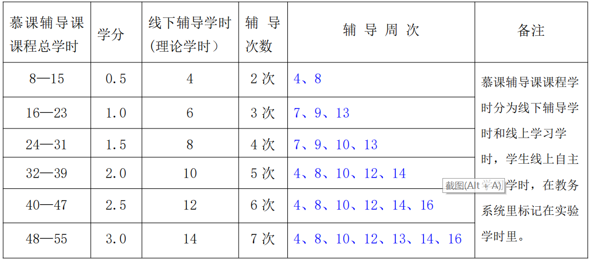 3.慕课辅导课课程学时与学分的对应关系说明及课程辅导次数、辅导周次安排