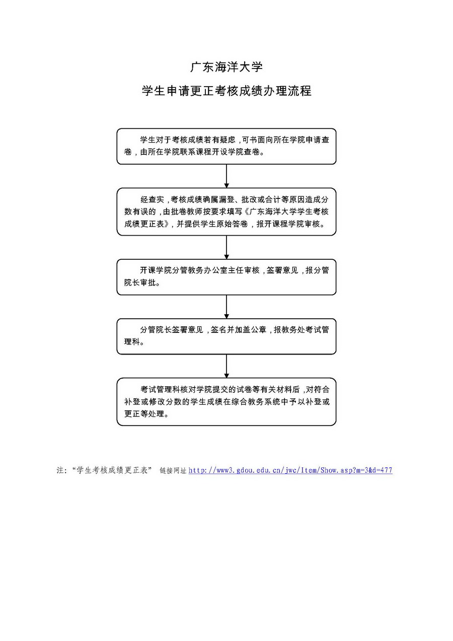学生申请更正考核成绩办理流程